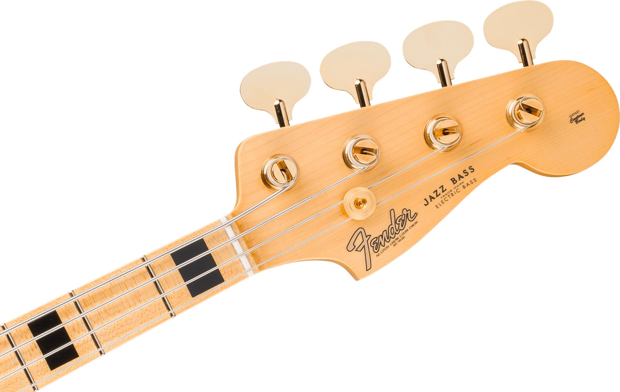 Il basso presenta un corpo leggero in due pezzi di frassino selezionato, rifinito con una laccatura alla nitrocellulosa per un look di ispirazione vintage. Il manico in acero quartersawn presenta un comodo profilo a “U” in stile Jazz Bass® del 1960 ed è sormontato da una tastiera in ebano o acero quartersawn e 20 tasti Medium Jumbo.