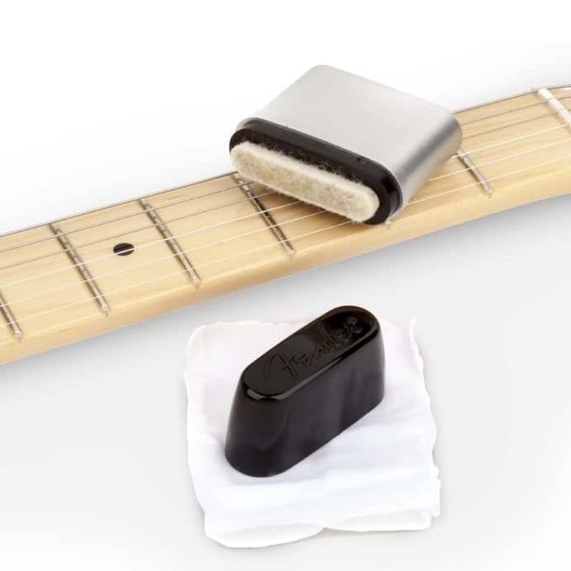 Lo Slick String Cleaner Fender prolunga la vita delle corde degli strumenti. Usare l’applicatore è un gioco da ragazzi. Il tampone applicatore, trattato con la soluzione proprietaria Fender per la pulizia, fa tutto il lavoro per te. Basta strofinare su e giù per le corde e asciugare con il panno incluso. La soluzione per la pulizia Slick Fender è sicura per qualsiasi finitura e/o legno della tastiera.