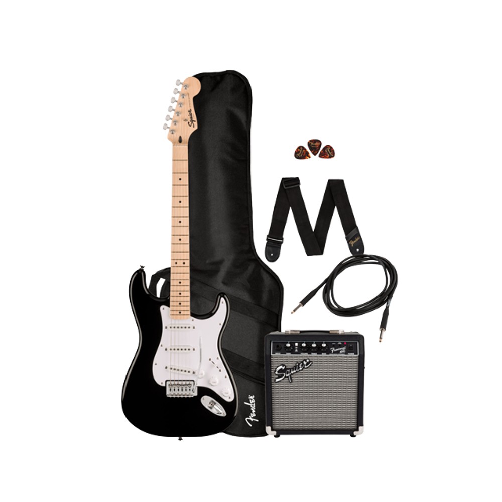 Lo Squier Sonic Stratocaster Pack è pronto per lanciare qualsiasi avventura musicale offrendo ai nuovi musicisti una comoda collezione di elementi essenziali per la chitarra in un box. Un’icona della storia della musica e un’ottima scelta per i principianti, la Stratocaster è rinomata per il suo body sagomato elegante e comodo e per il manico sottile e facile da suonare. Tre pickup single coil producono un suono stimolante e versatile, perfetto per qualsiasi genere musicale ed un ponte tremolo invita a effetti di vibrato espressivi che sicuramente stimoleranno la tua creatività.