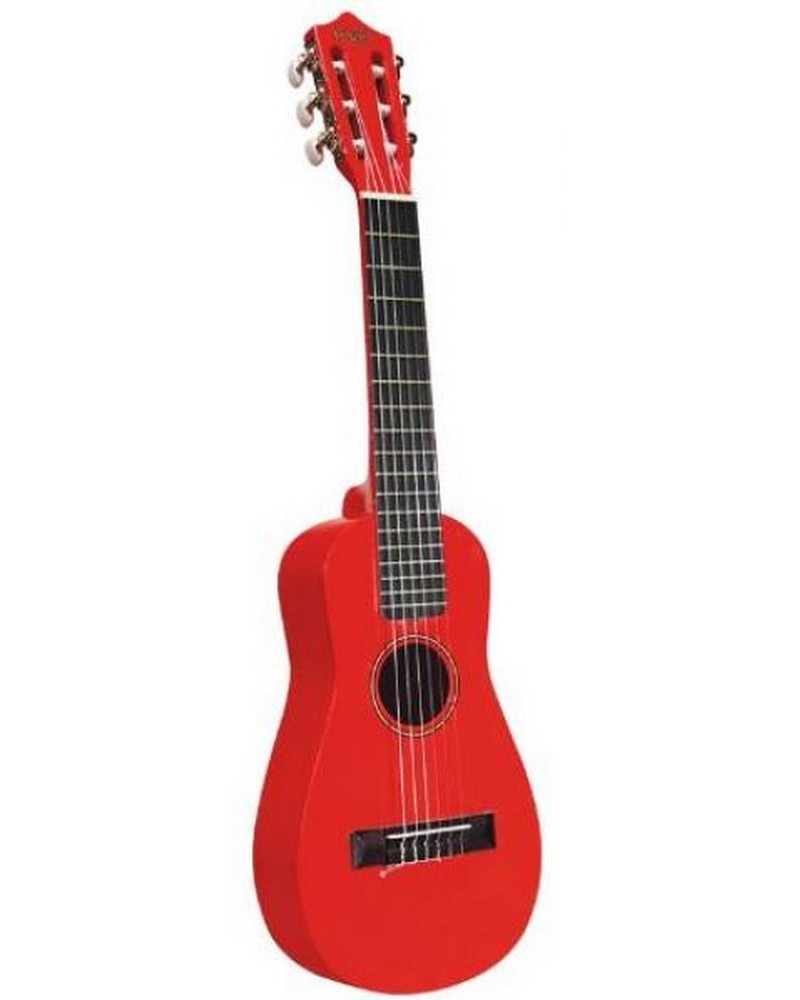 Ukulele chitarra, corpo in acero, manico in nato, tastiera e ponte in acero, meccaniche dorate con palette perlate, tasti in ottone, capotasto e traversino in ABS bianco, diapason 480mm, 18 tasti colore ROSSO