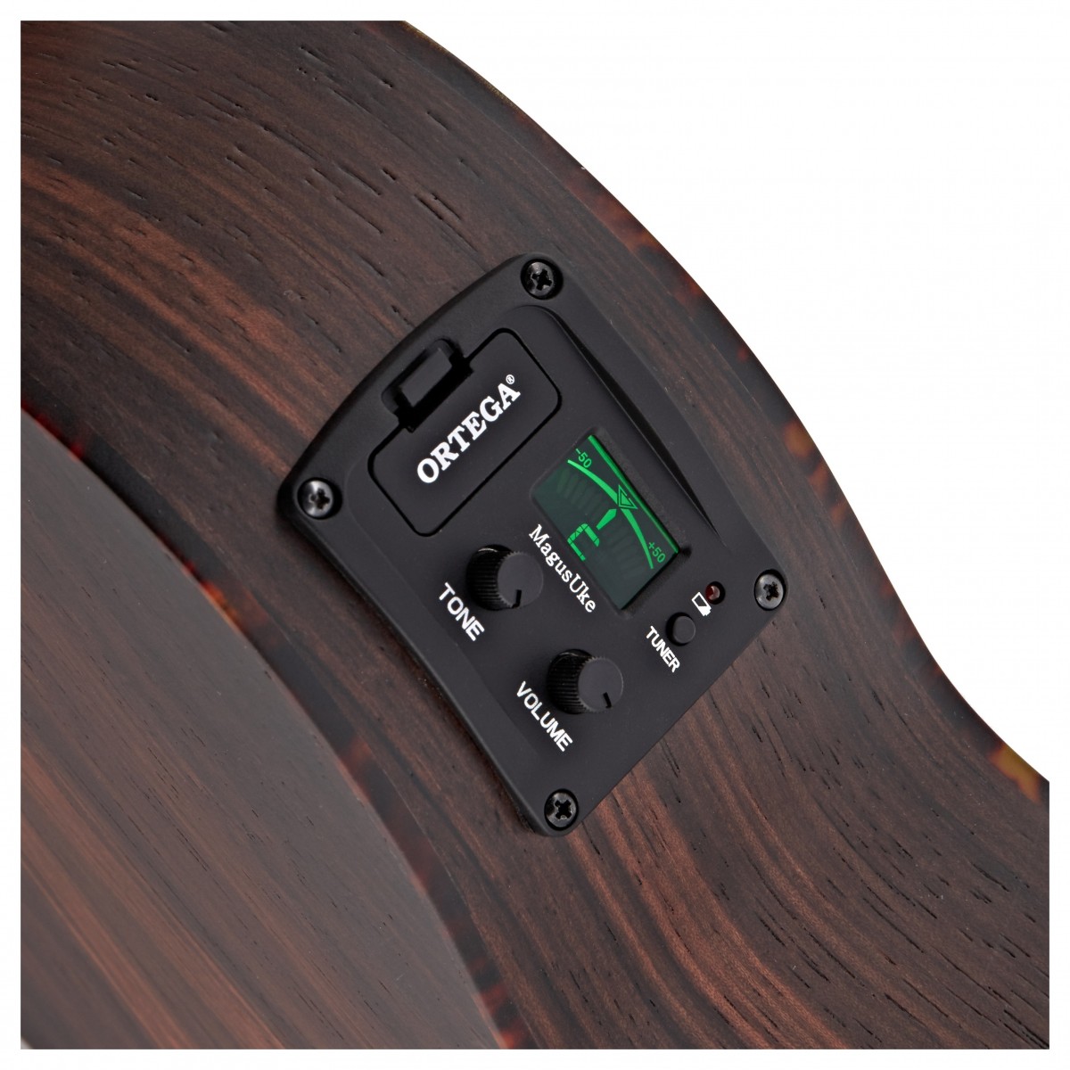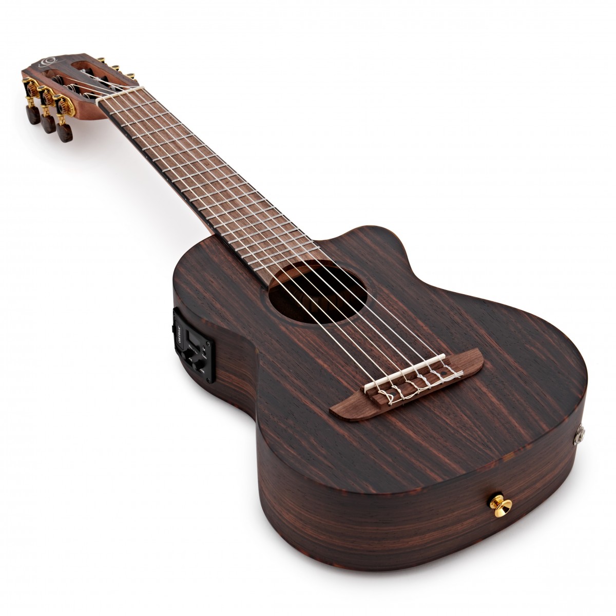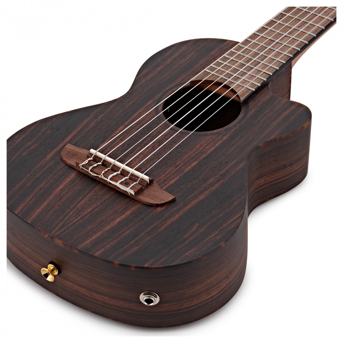 Guitarlele elettroacustico com cutaway. Top e corpo in ebano. Manico in mogano. Elettronica MagusUke com accordatore
