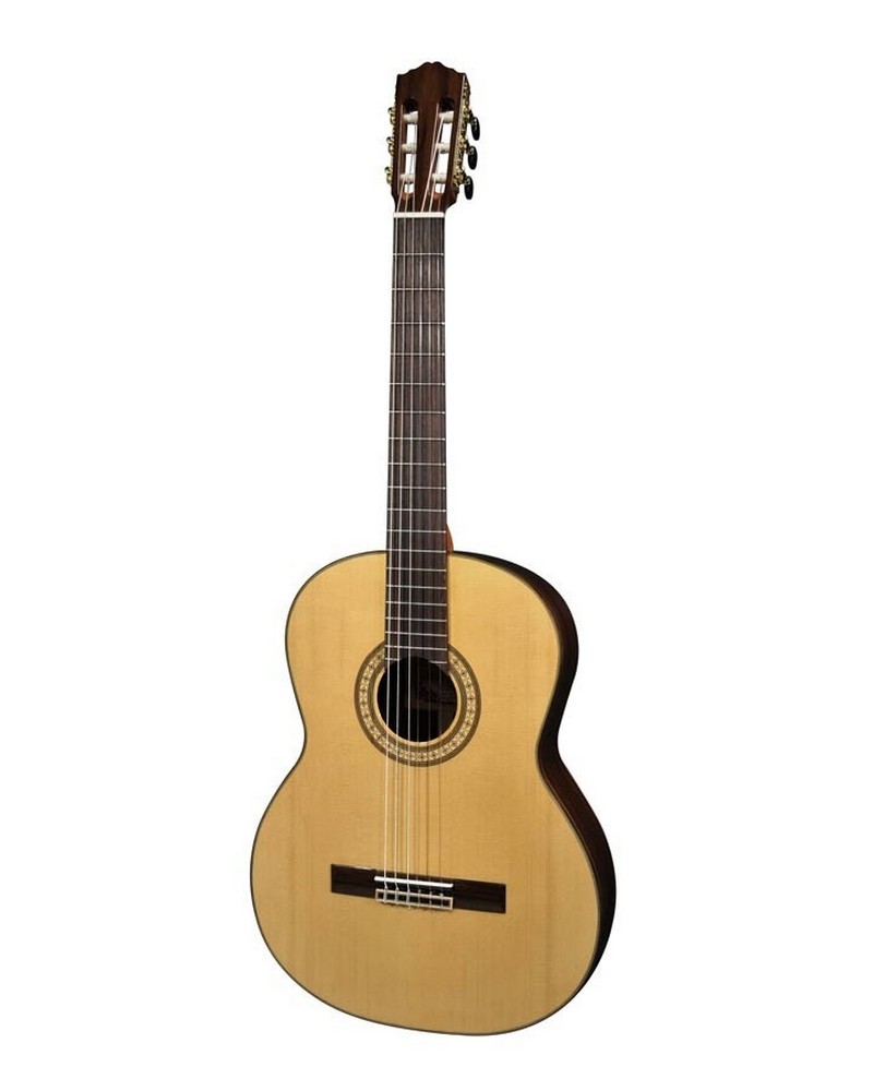 Bella e dal carattere deciso, molto risonante e dalla grande proiezione sonora. Grazie ad un piano armonico in abete massello, al palissandro del fondo e delle fasce e alla tastiera in ebano che conferisce maggior attacco alle note.